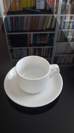Da ist diese Dreiergruppe weißen Gebrauchsporzellans. Offensichtlich haben sie einen Polterabend nur knapp überlebt. Zumindest lässt das Trümmerfeld vor dem Münchner Siegestor diesen Schluss zu. Dort ist wohl viel Geschirr zerdeppert worden. Die drei Tassen blieben heil und werden von mir heute gerne zum Morgenkaffee genutzt.