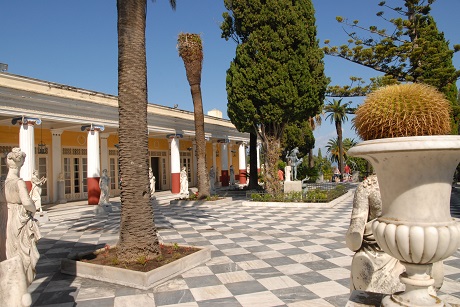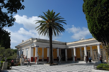 So nähert man sich von Nordwesten aus über Gastoúri dem Achilleion, der Attraktion der Insel, was nicht zuletzt den prominenten Mietern geschuldet ist. Die Villa Braila, die ursprünglich auf diesem Hügel stand wurde, 1889 bis 1891 grundlegend umgestaltet – nach Plänen und unter Anleitung von niemand geringerem als Kaiserin Sisi.