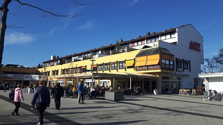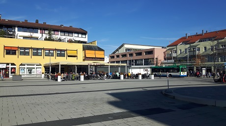 Gestern habe ich erzählt, wie es mich mit dem Taxi nach Fürstenfeldbruck verschlagen hat. Dem schönen Wetter war es geschuldet und dem ohnehin mageren Geschäftsgang, dass ich nach einem schönen Café Ausschau hielt. Dann musste ich wählen zwischen Sonne und Kuchen. Und entschied mich für einen leckere Zimt-Kirsch-Streusel aus der Confiserie Nessbach & Schwalber, allerdings im Schatten und mit Blick auf den sonnigen Geschwister-Scholl-Platz neben dem S-Bahnhof Buchenau.