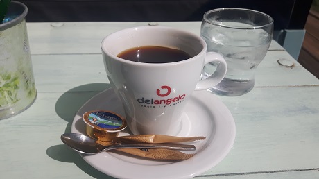 Jetzt bin ich natürlich am anderen Ende der ampelgeregelten Ortschaft. Ganz wie ein Einheimischer – ich bin ja lernfähig! – fahre ich kaltblütig an der Schlange und der roten Ampel vorbei. Allerdings ganz so wagemutig bin ich ja auch nicht, weshalb ich schon nach wenigen Metern auf den Parkplatz des Café Dolce einbiege.