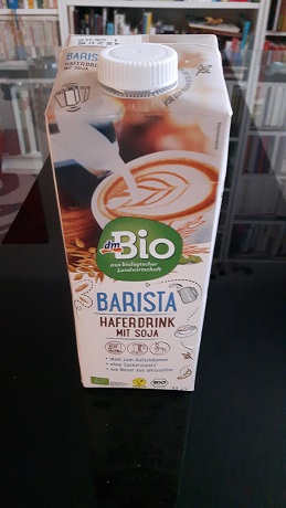 Allerdings bin ich beim Stöbern im Drogeriemarkt „dm“ auf diese günstigere Barista-Edition gestoßen. Diesem Hafermilchgetränk wurde etwas Soja zugefügt. Das löst aber das Problem mit dem Aufschäumen noch nicht. In diesem Fall wird das mit dem Zusatz von Sonnenblumenöl erzielt.