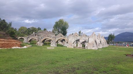 Das Plätschern hat ebenso unvermittelt aufgehört, wie es begonnen hat und ich traue mich aus dem Hotel. Ich nutze die Gelegenheit, um mir die venezianische Werft anzusehen. Ein erster Versuch scheiterte. Ich folgte einem Wegweiser von der Hauptstraße, wurde allerdings von einem Bauzaun gestoppt. Seit einem Erdbeben darf die Ruine nicht mehr betreten werden. Diesmal versuchte ich es erfolgreich von der anderen Seite.