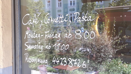 Am Südende der Straße liegt das „Piacere Nouvo“, was – vielleicht in Anlehnung an das einstige Vergnügungsviertel – in etwa „neues Vergnügen“ bedeutet. Und das Angebot ist vielseitig: Vormittags ein schnelles Frühstück mit leckeren Cornetti, mittags schauen einige Geschäftsleute von den nahen Unternehmensberatungen auf ein „pranzo“ vorbei, ein kleines Mittagessen, abends wird üppiger gespeist. Im Angebot gibt es raffinierte Pasta-Gerichte, frische Salate und natürlich Pizza. Normalerweise. Seit dem 08.12.2020 kann man sich dort auf Covid-19 testen lassen, für 33 € und in 15 Minuten. Der gastronomische Betrieb ruht inzwischen. So lange der Lockdown besteht ist auch nicht an eine Wiedereröffnung zu denken.