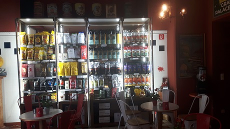 Dann das Aus und wenig später der Neubeginn nur wenige Schritte weiter (und meiner Meinung nach sogar in noch besserer Lage) und mit kleinem Garten. Natürlich ist die Kapotheke genauso „verramscht“, wie das Vorgänger-Lokal. Das soll nicht darüber hinwegtäuschen, dass man hier vorzüglichen Kaffee bekommt. Kaffeekurse für Anfänger und Profis, eine Reparaturwerkstatt für private- und gewerbliche Kaffeemaschinen, Großhandel für Kaffee, den berühmten Zucker von der Insel Mauritius, Verkauf von Gewerbemaschinen, Ersatzteile, Kaffeebar mit diversen Kaffeesorten und Maschinen, das alles beschreibt nur einen Teil des Angebotes.