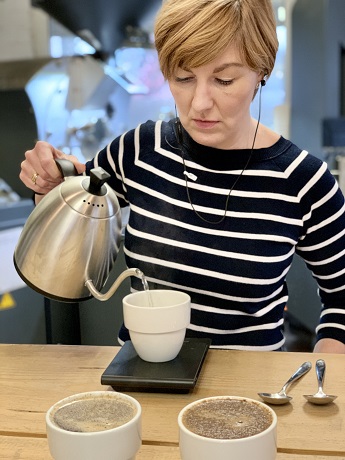 Nach einer kleinen Einführung in die Welt des Kaffees werden dann die vier verschiedene Filterröstungen verkostet. Jenny, die Leiterin der Kaffeeschule Heilandt in Köln, oder ihr Team zeigen, worauf es bei einem Cupping ankommt und welche überraschenden Aromen sich in den Kaffees entdecken lassen. Die Kaffees werden blind verkostet. Gemeinsam wird geschlürft und unter Anleitung bewusst geschmeckt.