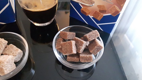 Zum anderen gibt es speziellen Espressozucker, wie den des österreichischen Herstellers „Wiener Zucker„. Mit einem Gewicht von nur 2 g erlaubt er individuelleres Süßen, zum Beispiel eines namensgebenden Espressos. Alle Vorteile – schnelle Auflösung, karamelliger Geschmack und espressofreundliche Größe – vereint der Diamant Coffee Sugar Cube in sich: brauner Kandisfarin im 2-Gramm-Würfel. Fazit: ein modernes Produkt, das einen Anglizismus vertragen kann. Für passionierte Espressotrinker, die auf etwas Süße nicht verzichten wolle, ein Muss!