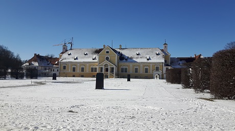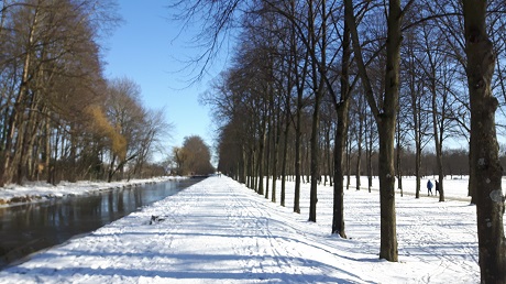 Ich drehte also meine runde um das Neue Schloss, hinter dessen Rückseite sich der Park erstreckt. In der Ferne sah man Schloss Lustheim, auf dem zugefrorenen Kanal davor tummelten sich zahlreiche Eisläufer und anderes Volk. Mir stand der Sinn nicht nach Menschenmassen, die offensichtlich nicht in der Lage sind vernünftige Abstände einzuhalten. Vom Tragen von Masken ganz zu schweigen. Außerdem wurde mir langsam kalt. Das fehlt halt zur Zeit: die Einkehrmöglichkeit zum Aufwärmen!