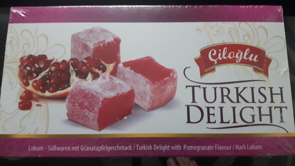 Ich habe meine Packung kurz vor Eid al-Fitr, dem Tag des Fastenbrechens oder auch Zuckerfest gekauft. Diesmal wollte ich etwas machen, was ich mir schon oft vorgenommen hatte, nämlich den unter mir wohnenden türkischen Nachbarn zum Zuckerfest zu gratulieren. Irgendwie war ich wohl nicht der Einzige, der auf diese oder eine ähnliche Idee gekommen war, was die offenbar gestiegene Nachfrage erklärte. Von der Schachtel, die ich salopp einmal als „Bunte Vielfalt“ bezeichnen würde, gab es genau ein Stück. Trotzdem bestimmte ich genau diese als Geschenk für die Nachbarn und begnügte mich etwas monothematisch mit Granatapfel.