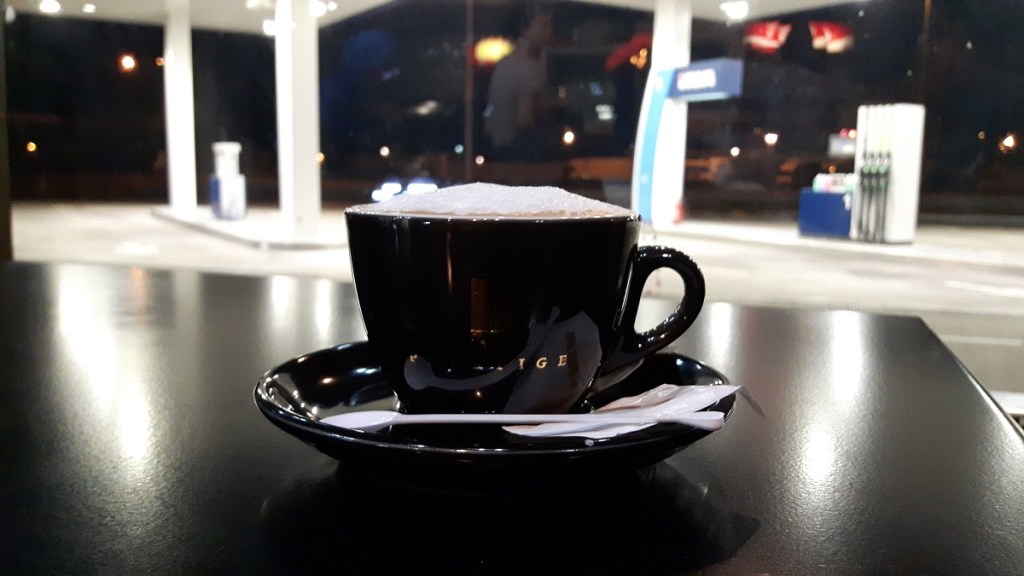 Wie auch immer, man hat sich mühsam aus seinem Sitz geschält und ist ausgestiegen. Die ersten Schritte sind noch etwas steif, schließlich saß man die letzten Stunden fast ununterbrochen. Dann tappst man auf das helle Licht der Raststation zu und sucht nach Kaffee. Der ist heute ein Cappuccino aus dem Automaten und kein Mokka – auf meinen speziellen Wunsch hin nicht im Pappbecher, sondern in Porzellan. Aber das macht nichts, denn der erste bosnische Kaffee ist nicht mehr weit…