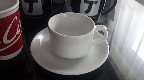 Da wären diese beiden Tassen aus dem Hause McDonalds. Das dürfte die erste Porzellan-Edition des damals neuen McCafés gewesen sein. Zu mir kamen sie während einer Sylvester-Nachtschicht. Sie wurden offensichtlich zum Mitternachts-Anstoßen vom vorherigen Besitzer zum letzten Mal benutzt, nur um dann achtlos am Bordstein vor einem Taxistand zurückgelassen zu werden. Da sackte ich sie ein. Da sehr robust haben sie mich schon auf verschiedenen Wanderungen und zu Picknicks begleitet.