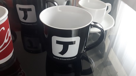 Die drei Tassen mit dem Logo des Softwareunternehmens Tricentis – „Tri“, vermutlich deshalb zu dritt – stammen aus dem heimischen Tonnenhaus. Der Vorbesitzer war so nett sie nicht in die Tonnen zu werfen, sondern deutlich sichtbar daneben abgestellt. Da wurden sie eingesackt. Dank ihrer Größe geeignet für Großportionen oder (ja, auch das trinke ich gelegentlich!) Tee.