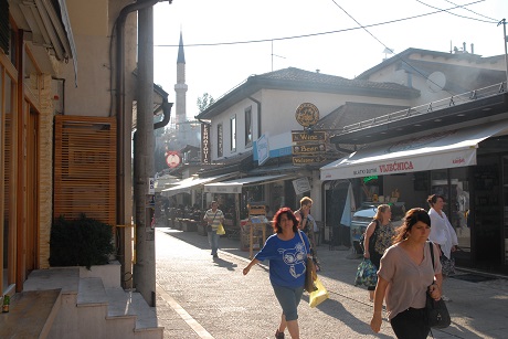 Am Morgen blinzelt die Sonne noch etwas verhalten durch Dunst, Smog und den aufgewirbelten Staub der Straßenfeger. Jetzt ist die beste Zeit zum Einkaufen, bevor die Mittagshitze die Altstadt in einen Glutofen verwandelt. Vereinzelt sitzen schon Kupferschmiede vor ihren Buden und Treiben Kännchen und Töpfe aus dem Metall. Ihr Klopfen ist der Puls der Altstadt und begleiten einen bis in den späten Nachmittag. Leider mehr Show als Realität: die meisten der kupfernen Džezvas, Schälchen und Tabletts – unentbehrlich für die Zubereitung Bosnischen Kaffees – kommen mittlerweile aus Fernost. Trotzdem sind sie schön…
