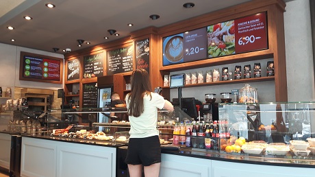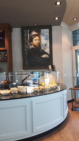 Rechter Hand die langgezogene Theke mit all den Leckereien, linker Hand helle Tische und Stühle, so präsentiert sich das Böcklin Coffee dem Gast. Der Kaffee, geröstet im Hause Dinzler, soll eine spezielle Mischung für das Café sein. Mehr war leider trotz mehrfacher Anfragen, mündlich wie schriftlich, leider nicht in Erfahrung zu bringen. Die Webseite des Unternehmens wird immer noch erstellt. Chef jedenfalls ist Tuncay Yasar, der auch die Cafeteria im nahe gelegenen Deutschen Herzzentrum betreibt.