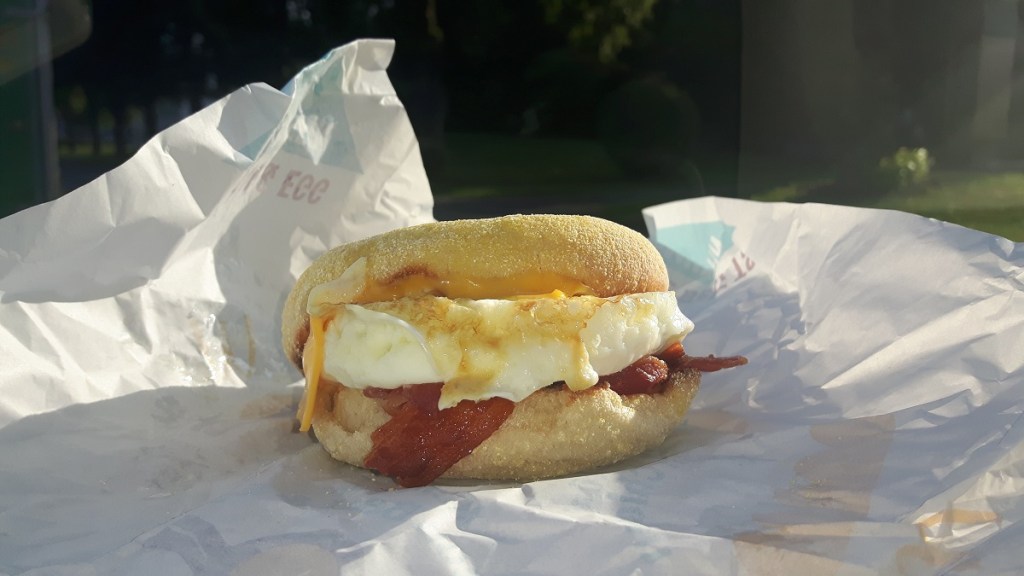 Mal sehen, wie der große Burger-Brater den Egg-Burger so macht. Erinnert Ihr Euch an meine leckeren Frühstücksburger auf dem Balkon. Da kann das Original tatsächlich nicht mithalten. Aber so schlecht ist er nicht. Und er vertreibt den Hunger wenigstens für ein paar Stunden. Viel Zeit bleibt nicht, dann kommt der nächste Auftrag…