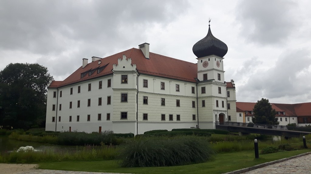 So liegt der Ort, der zum Landkreis Freising gehört, zwischen Petershausen, Reichertshausen, Allershausen und Farenzhausen. Zu sehen ist die 2.600-Seelen-Gemeinde schon von weitem, denn sie liegt auf einer Anhöhe. Auf der thront die spätgotische Pfarrkirche St. Johannes Evangelist, deren Schneeweißer Glockenturm steil in den Himmel ragt. Dass es dort auch ein Schloss gibt, war mir neu. An der Kirche kommt man praktisch immer vorbei, egal aus welcher Richtung man kommt und in welche Richtung man will, das Schloss hingegen liegt zwischen der B13 in nördlicher Richtung und der Petershausener-Strecke und war mir bisher entgangen.
