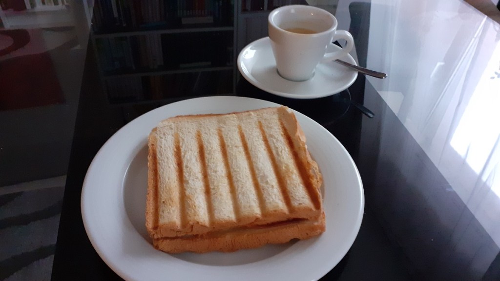 Dazu gab es einen Espresso, die gute Ella, die ich Euch gestern bereits kurz vorgestellt habe. Diesmal reicht es nur für eine kurze Snack-Pause, denn gleich geht meine Taxischicht weiter! Diesen innigen Kaffee- und Panini-Toast-Moment konnte ich mir aber kaum entgehen lassen. Vom Teilen mit Euch ganz zu schweigen…