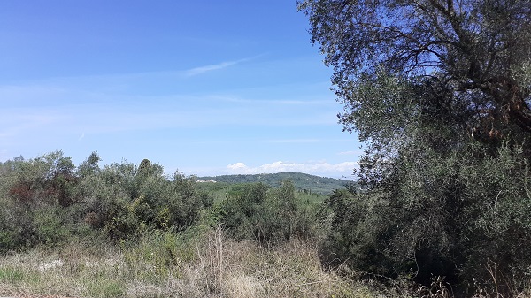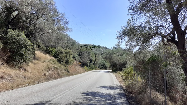 Hier fahre ich im Schatten der Olivenbäume. Die ganze Ebene scheint damit bepflanzt zu sein. Das ist kein Zufall! Tatsächlich ist über die Hälfte der Fläche der Insel mit Olivenbäumen bedeckt. Während andere Gebiete Griechenlands unter Osmanische Kontrolle fielen, gehörte Korfu über 400 Jahre lang zu Venedig, nämlich von 1386 bis 1797. Viele Gebäude vor allem in der Hauptstadt Kerkyra künden von dieser Zeit. Einerseits entwickelten die Venezianer die Insel, andererseits erhofften sie sich im Gegenzug für sie wichtige Rohstoffe, wie zum Beispiel das damals sehr begehrte Olivenöl.