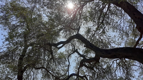 Da einige von den Olivenbäumen nicht geschnitten wurde, konnten sie ungehindert ihre zum Teil beeindruckende Größe erreichen. Was aber die Ernte erschwert. Zumeist werden Plastiknetze in den Olivenhainen ausgelegt und gewartete, bis die Oliven herunterfallen. Oder sie werden mit langen Stangen abgeschlagen, was sehr mühsam ist. Allerdings macht das auch das Besondere des korfiotischen Olivenöls aus. Während anderenorts die noch grünen Oliven von den niedrigeren Bäumen gepflückt werden, wird hier erst die Reife Frucht geerntet, was seine goldene Farbe und den milden Geschmack des Öls erklärt. Damit ist dieses Olivenöl dem kretischen durchaus ebenbürtig, wenn nicht sogar überlegen.