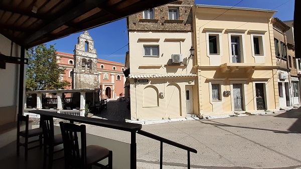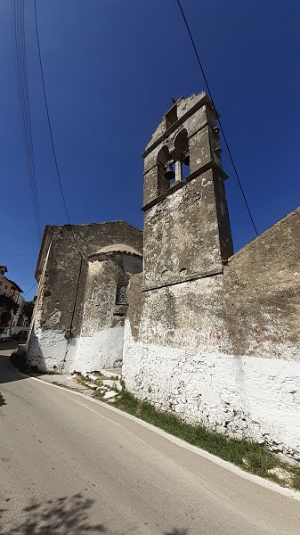 Perivoli ist ein typisches, Korfiotisches Dorf mit etwa 1.200 Seelen. Zum kleinen Fischerhafen und zum Strand sind es nur anderthalb Kilometer. Hier leben noch einmal etwa 50 Menschen. Da sich früher der ganze Verkehr, der jetzt über die Umgehung abgeleitet wird, durch das Dorf schob, wurden die meisten alten Häuser entlang der Hauptstraße gebaut. Ein leicht erkennbares Zentrum gibt es nicht, aber etwa in der Mitte des langgezogenen Dorfes zwei Kirchen, davon eine in Betrieb, ein kleiner Supermarkt, einige Tavernen und Cafés, darunter direkt an der Kreuzung das Kafenion Enplo.
