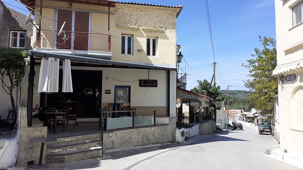 Als ich dort ankomme ist gerade Mittag, das Dorf wie ausgestorben. An der Ecke mit dem Supermarkt, der eher einem Tante-Emma-Laden gleicht, wartet eine Schülerin auf irgendwen. Wir werden nie erfahren auf wen, denn er oder sie wird nicht kommen. Im Schatten des Kafenions sitzen der Wirt und zwei Gäste. Die Türe auf ganzer Ladenbreite ist weit offen, weshalb drinnen und draußen hier keine Rolle spielt. Der Wirt sitzt hinter der Bar, die beiden Gäste an verschiedenen Tischen. Wie schon so oft beobachtet unterhält man sich natürlich quer durch den Raum.