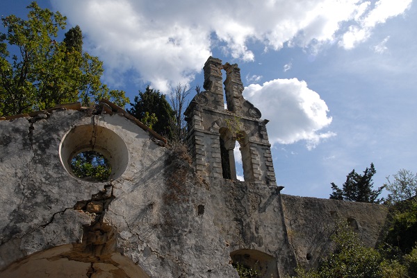 Vom Kap an wird der Weg endlich etwas weniger Steil. Dann, endlich, sieht man am Ende des Weges das Kloster durch die Bäume spitzen. Ich klettere durch die Ruinen des Klosters. Noch vor 100 Jahren sollen die Gebäude in gutem Zustand gewesen sein, bis sie mehrfach ausgeplündert wurden, was die Kirche vergeblich zu verhindern suchte. Ob die Mönche damals allerdings einen Blick für die fantastische Aussicht auf das Meer und die Nachbarinsel Paxos hatten, ist hingegen nicht überliefert. Vom Kloster führt ein Trampelpfad zu einem der ruhigsten Strände der Insel. Vielleicht ein andermal.
