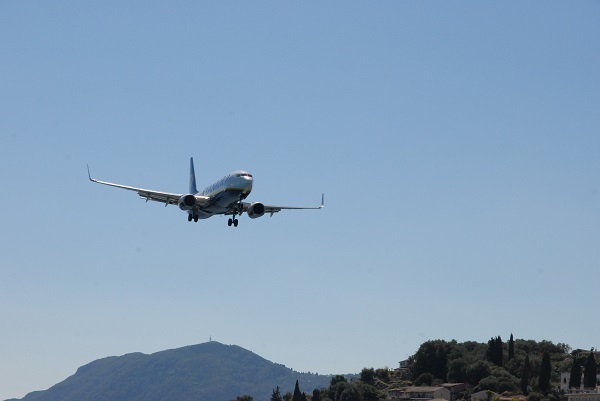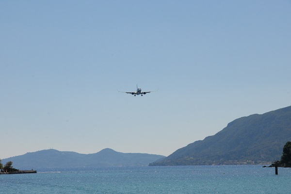 Das liegt daran, dass der Steg mitten in der Einflugschneise liegt. Die meisten Flugzeuge fliegen über Albanien an, fliegen dann eine Rechtskurve und nähern sich dann von Süden der Landebahn. Die liegt so nah am Meer, dass die Befeuerung zum Landeanflug im Wasser steht. Die letzten paar hundert Meter geht es zwischen Perama und Kanoni in die Schneise, bis der Vogel dann aufsetzen kann.