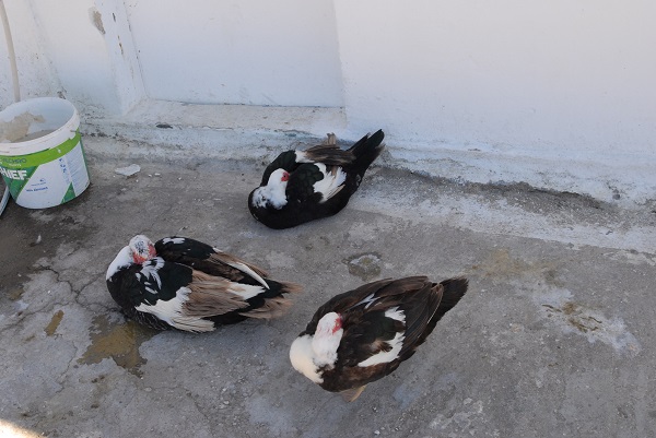 Über den blumengeschmückten Hof erreicht man die kleine Kapelle. Typisch für orthodoxe Kirchen das viele Gold und die vielen Ikonen. Außerdem leben auf der Insel drei Kloster-Hühner, zu welcher Rasse sie gehören entzieht sich meiner Kenntnis. Vielleicht warten sie darauf beim nächsten Klosterfest im Topf zu landen. Von den Touristen lassen sie sich jedenfalls nicht beeindrucken und halten ihren Mittagsschlaf.