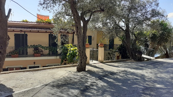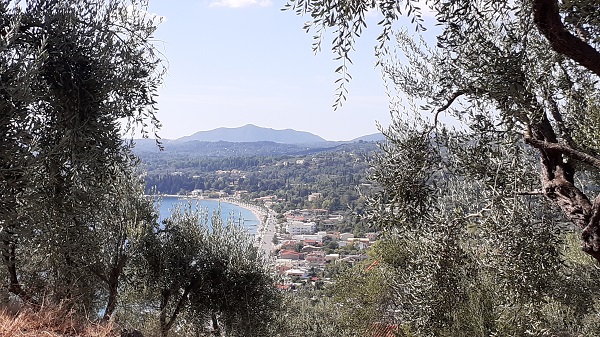 Und schon stehe ich auf dem Balkon. Und das, was mich hier erwartet, das nimmt mir fast den Atem. Ein Blick über die Dächer des Dorfes, den Abhang hinab, dann übers Meer und bis nach Albanien. Und ich bin noch nicht einmal in der Nähe des Gipfels.
