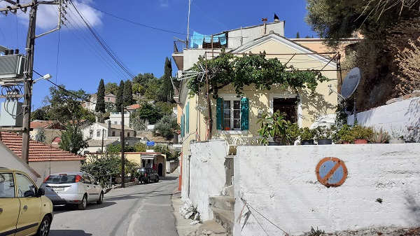 Und tatsächlich finde ich am Ortsausgang von Spartilas den bisher ersten Wegweiser zum Berg. Wichtig ist der Hinweis mit der Abzweigung nach etwa 2 Kilometern. Ansonsten sieht es auf dem Schild einfacher aus, als es wahrscheinlich ist. Aber dazu kommen wir morgen…