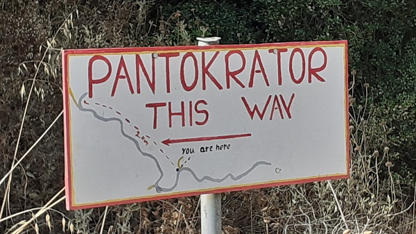 Nach zwei Kilometern kommt die erwähnte Abzweigung. Und nein, der Pantokrator ist nicht gleich um die Ecke: von hier sind es noch etwa zwölf Kilometer und auf halber Strecke liegt der Ort Strinilas, ein ruhiges Bergdorf mit engen Gassen, dass sich in eine kleine Senke hineinschmiegt. Übrigens ereignet sich hier der einzige verkehrstechnische Mordversuch.