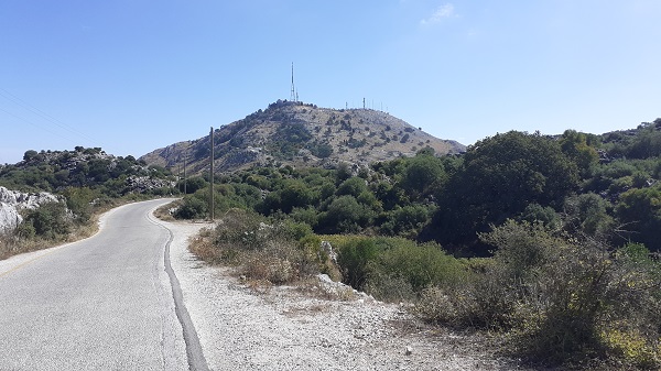 Kaum zwei Kilometer weiter zweigt die Straße zum Gipfel ab. Die Spannung und Erwartung steigt. Man erwartet nach jeder Kurve die Bergkuppe zu sehen. Man nähert sich von Osten über einen breiten Grat, die Pflanzen werden spärlicher und weichen schließlich dem Karst oberhalb der Baumgrenze, die niedrig ist. Und dann ist es wie erwartet: eine Kurve, eine leichte Anhöhe und man sieht den Pantokrator.