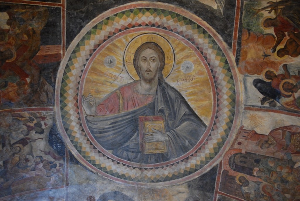 Der Berg, den die Venezianer Monte San Salvatore nannten, trägt heute den Namen Pantokrator, ein Gottesbegriff aus dem Alten Testament, der später ganz auch Christus übergegangen ist und so viel wie Welt- oder Allesbeherrscher bedeutet. Christus Pantokrator ist eine beliebte Darstellung der Ikonographie, die in der byzantinischen Kunst ihren Ursprung hat und in der griechisch- und russisch-orthodoxen Kirche ihre Fortführung fand.