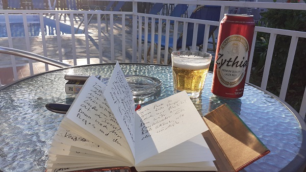 Zurück im Hotel lasse ich den Tag noch einmal Revue passieren. Ein Frappé am Strand, eine griechischer Kaffee im Bergdorf, ein zweiter Frappé auf dem Pantokrator und am Ende des ereignisreichen Tages noch einmal Cappuccino und Torte. Und ich habe noch zwei Tage vor mir! So kann es von mir aus weitergehen, auch wenn ich es morgen etwas ruhiger angehen werde. Die großen Ziele habe ich eh schon erreicht!
