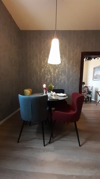 Schon bei meiner ersten Olching-Fahrt war ich dort vorbeigekommen. Meine Wahl fiel allerdings damals auf die Konditorei. Da das aber zweimal so kurz hintereinander langweilig wäre, kam jetzt das Insel-Café dran. Schon gleich nach dem Eintreten überraschte mich die gediegene Einrichtung. Ist der erste Raum mit der Kuchen-Theke noch recht einfach gehalten, verströmen die beiden Nebenräume einen eleganten Chic.