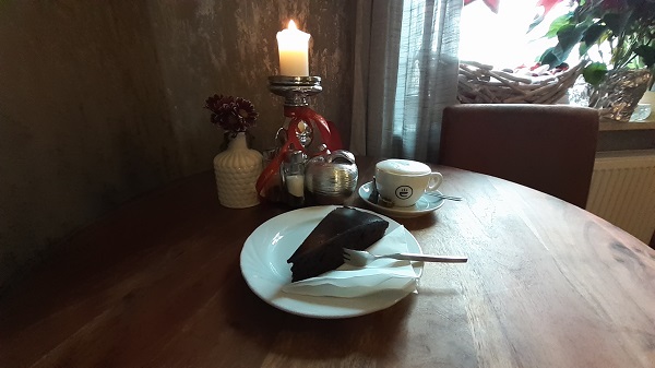 Meine Wahl hingegen fiel auf einen Schokoladenkuchen, der es mit jedem Kuchen aus einer Konditorei getrost aufnehmen kann. Dazu gab es Kaffee der Münchner Kaffeerösterei emilo. Die „emilo Spezialitätenrösterei“ gibt es seit 2012 und wurde 2018 vom Crema Magazin als Rösterei des Jahres ausgezeichnet. Ich wurde also Kaffee- und kuchentechnisch bestens versorgt.