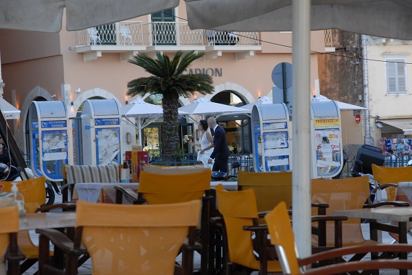 Der Kellner muss allerdings einen weiten Weg bis zu mir zurücklegen, denn ich sitze ganz am Rand zum Park. Dafür entlohne ich ihn schon bei Lieferung und gebe ihm ein zusätzliches Kilometergeld. Dann eilt ein Brautpaar vorbei. Auch sie haben es eilig die letzten Sonnenstrahlen für das Hochzeitsfoto zu erhaschen. Und welcher Hintergrund könnte sich besser eignen als die von der Abendsonne beschiene alte Festung? Es ist DAS Wahrzeichen der Insel und darf auch auf diesem Bild nicht fehlen.