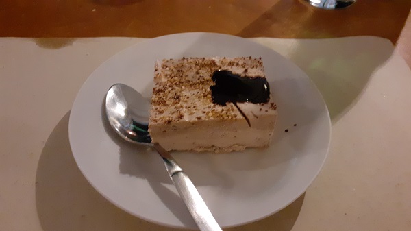 Leider wurde der Koch diesem Wahrzeichen der korfiotischen Küche diesmal nicht gerecht. Es blieb farblos und fade – und damit weit hinter den Erwartungen zurück. Darüber kann der leckere Nachtisch nur bedingt hinwegtrösten. Hätte ich nur Verspeise und Nachtisch genommen, es wäre besser gewesen. Vielleicht hatte der Koch auch einfach nur einen schlechten Tag. Wer weiß.
