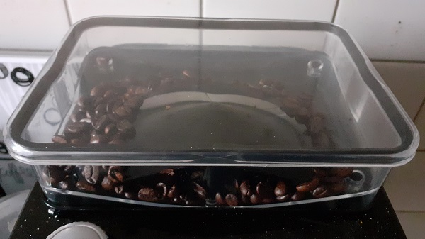 Positiv ist hingegen der luftdicht abschließende Bohnenbehälter. Die Wassermenge reguliert man am besten durch die eingefüllte Wassermenge. Der Automat zieht halt durch, was im Tank ist. Etwas spielen muss man sich bei den Einstellungen fürs Mahlwerk. Auf reale sechs Tassen kommt bei mir Kaffee für rechnerische zehn Tassen in den Filter. Ich bevorzuge übrigens Filtertüten anstelle des mitgelieferten Dauerfilters. Das Ergebnis ist einfach runder.
