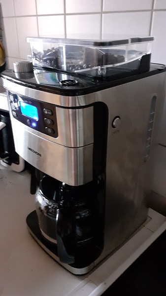 Ihr habt es sicher schon geahnt: mein Küchenpark hat Zuwachs bekommen. Genauer gesagt die Medion MD 15486, eine Kaffeemaschine mit integriertem Kegelmahlwerk aus Edelstahl und Timer. Letzteres war mir besonders wichtig, da mir dieses Gerät den Start in den Tag erleichtern soll. Ausschlaggebend war allerdings, dass mir kurz vor Weihnachten ein Gerät zum Preis von Knapp 20 Euro unter UVP über den Weg gelaufen ist. Da wollte und musste ich zuschlagen.