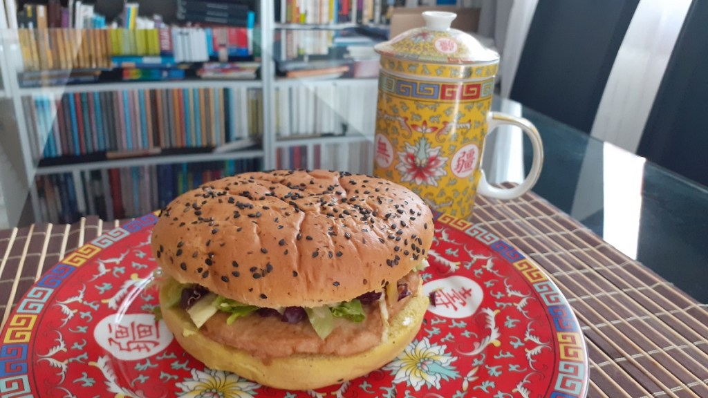 Die Grundlage für diesen leckeren asiatischen Frühstücksburger bilden ein würziges Curry-Sesam-Weizen-Bun, ein saftiges Hänchen-Patty, grüne Currysauce und Schmelzkäse. Letzterer ist – im Gegensatz zu Schnittkäse – auch im asiatischen Raum beliebt. Aufgepimpt wurde das ganze mit knackigem kleingeschnittenem Asia-Salatmix und süßer Mango – ein Gedicht! Dazu passt Vietnam-Kaffee mit cremiger gesüßter Kondensmilch. Authentischer geht es nicht!