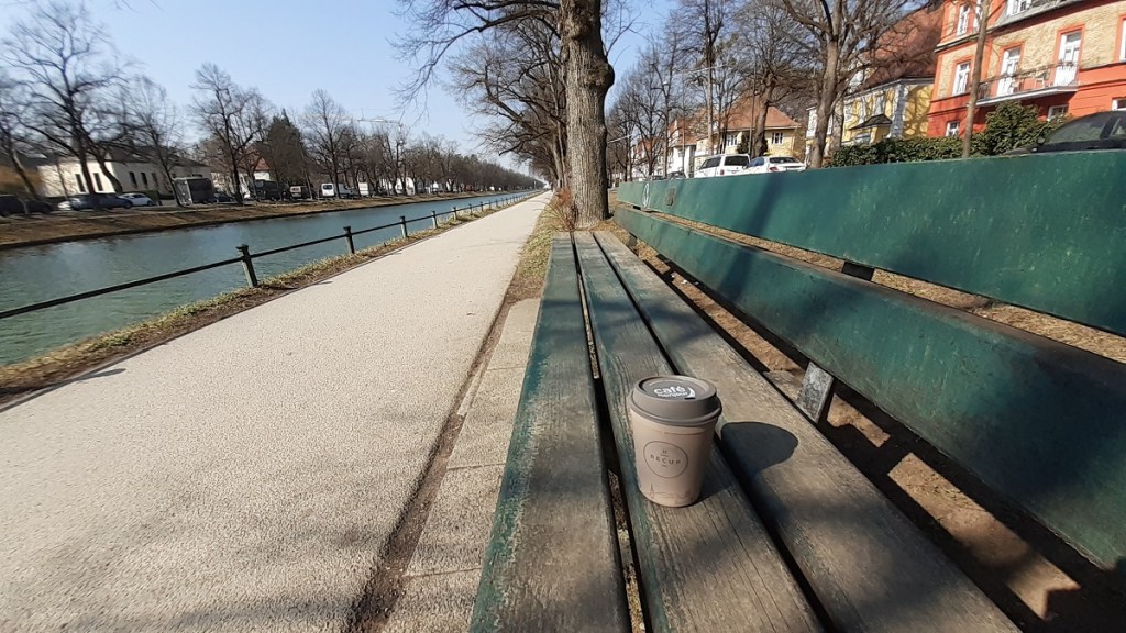 It is 320 years old, the Nymphenburg Canal, which makes the driveway to the palace so incomparable. In winter you can – sometimes – skate here, in summer sun-seekers like to sit on the benches by the water. I got hold of one of them because I’m there early enough. A beautiful, spring-like coffee moment! Of cause sistainable!