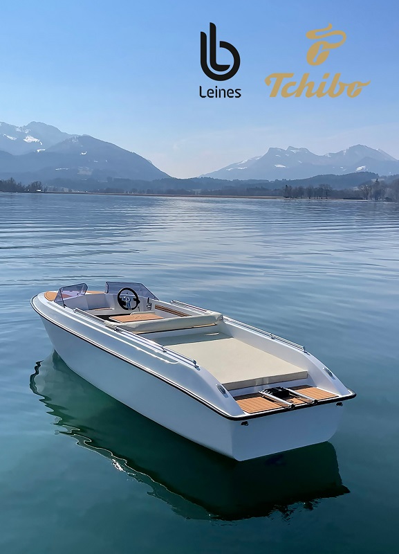 Für die 5,60 Meter langen Boote im eleganten Design braucht es keinen Führerschein. Mit bis zu 12 km/h können fünf Passagiere über Seen und Binnengewässer (Kategorie D) schippern. Noch nachhaltiger ist nur selbst schwimmen – und dafür verfügen die Boote über eine Badeplattform samt klappbarer Badeleiter. Tchibo kooperiert dabei mit dem bayerischen Hersteller Leines Boote. Die Manufaktur mit Sitz am Chiemsee hat sich dem nachhaltigen Bootsbau verschrieben. Das Modell Leines 560 „Comfort“ ist aus einem leichten GFK-Rumpf und verfügt über elegante Decks in Teakholz-Optik, eine Edelstahl-Reling, ein klappbares Verdeck, diverse Staufächer – plus großzügiger, gepolsterter Liegefläche zum Sonnenbaden. Hinter dem Skipper sitzt die Mannschaft auf einer L-förmigen Bank. Platz fürs Fischbrötchen-Picknick bietet ein einsteckbarer Tisch im Cockpit. Leines los!