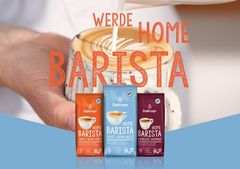 Dallmayr nutzt das positive Wachstum und führt mit der neuen Produktrange Dallmayr Home Barista drei Kaffeespezialitäten in Ganzer Bohne für den perfekten Genuss zu Hause ein. Die modern gestaltete Verpackung spricht eine junge, kaffeebegeisterte Zielgruppe an. Drei leuchtende Grundfarben sorgen für eine klare Unterscheidung der Sorten und heben die Range gleichzeitig deutlich von anderen Marken ab.