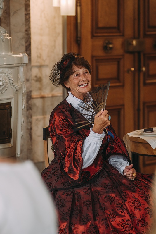 Wenn Gräfin Paula zu Königsegg-Aulendorf zu Kaffee und Gebäck in den Marmorsaal des Aulendorfer Schlosses lädt, stehen pikante Geschichten aus dem Hochadel auf dem Protokoll. Zwar ist die Gräfin als oberste Hofdame von Kaiserin Sisi zur Diskretion verpflichtet, ihre Zofe Rosalie nimmt es mit der Etikette allerdings nicht so ernst und plaudert bei der Führung durch die Säle und Gemächer des Schlosses munter aus dem Nähkästchen. Beim Kaffeeklatsch an der festlich gedeckten Tafel lässt es sich die Gastgeberin dann allerdings nicht nehmen, selbst aus ihrer Wiener Zeit zu berichten. Die Törtchen zum Mokka liefert Konditorin Luise Roth frisch an den Hof, wo sie zu den adeligen Anekdoten stilecht mit Silberbesteck vom feinen Porzellan gelöffelt werden dürfen.