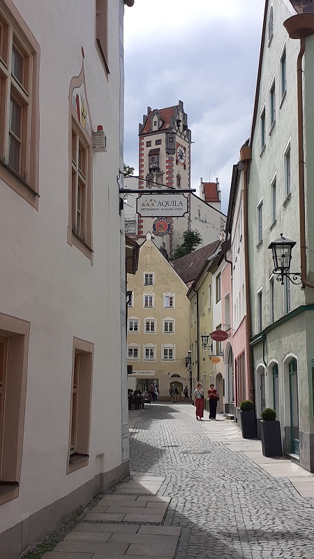 Nach nur zehn Minuten Bahnfahrt war ich in Füssen. Schließlich liegt die letzte Station, der Bahnhof Weizern-Hopfenau, geradezu vor den Toren der Stadt. Angekommen geht es für mich erstmal ein paar Schritte durch die Altstadt. Über die Bahnhofsstraße komme ich zum Prinzregentenplatz und von dort in die Fußgängerzone, die in Füssen passender Weise die Bezeichnung „Reichenstraße“ trägt!