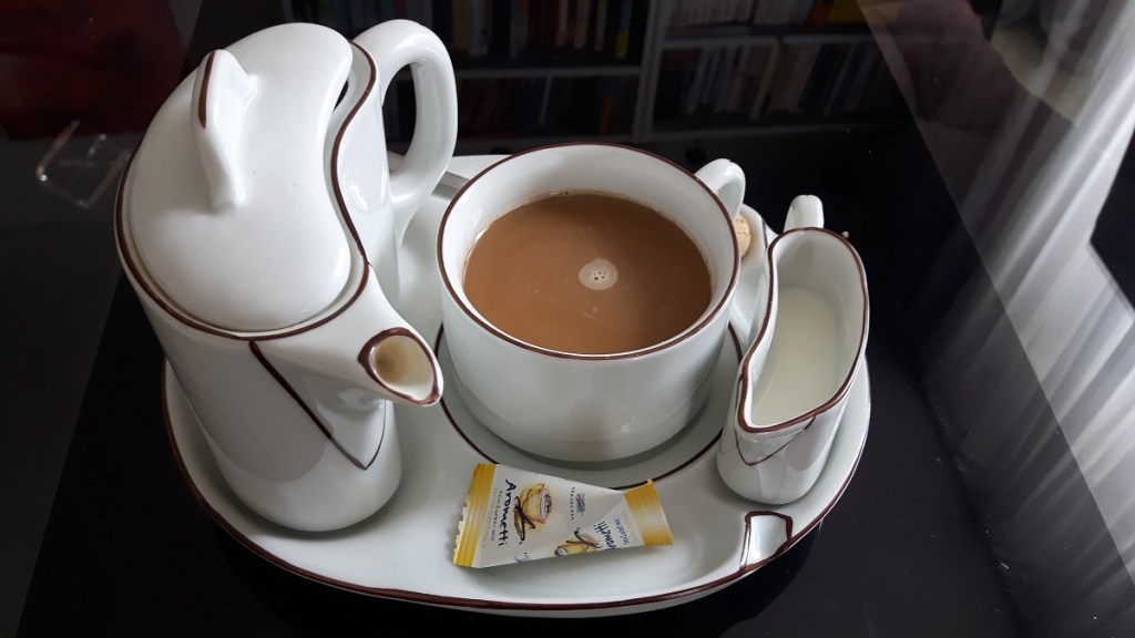 Zucker und Milch im Kaffee ist wirklich eine Glaubensfrage. Für mich ist ein Schuss Milch wichtig, mein Mann braucht außerdem noch Zucker. Es ist ein sehr hübsches Kaffee-Set.