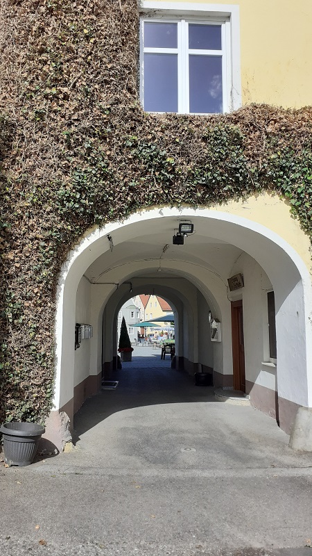 Die Straßen rund um die innere Altstadt folgen noch heute dem Verlauf der Stadtmauer von 1409. Ein kurzer Spaziergang lohnt: Altes und Neues Rathaus, ein Klosterhof, Mauerreste und dann durch ein früheres Tor auf den offenen Marktplatz. Hier findet sich das Café am Stadtplatz – zu verlockend, um hier nicht einzukehren!