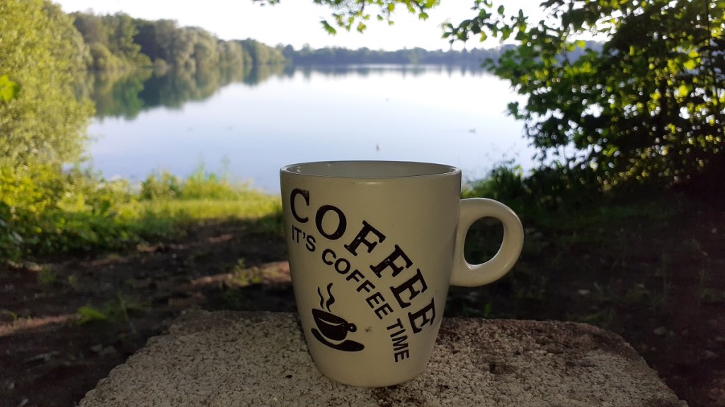 Drei Seen gibt es im Münchner Norden: Lerchenauer See, Fasanerie See und Feldmochinger See. Der Mittlere der drei Seen liegt in der Nähe des gleichnamigen S-Bahnhofes Fasanerie. Als es mich hierher verschlägt, war ich schon zwei Stunden mit dem Taxi unterwegs. Zeit für einen Schluck Kaffee! Und einen Kaffee-Moment lang die Ruhe am See genießen – bevor Badegäste kommen!
