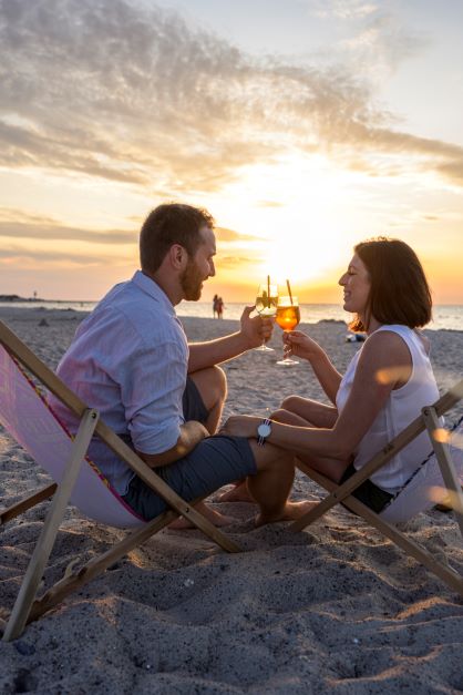 Nach einem langen Arbeitstag mit einer Tasse Kaffee den wohlverdienten Feierabend einläuten. Nach einem erlebnisreichen Tag am Strand einfach sitzenbleiben oder für das Fotoalbum die besten Lichtmomente einsammeln – Es gibt genug Gründe, um es sich für den Sonnenuntergang am Strand gemütlich zu machen. Wo geht das besser, als in einer Beachlounge? Die erste wurde 2008 in Scharbeutz eröffnet. Seither werden es stetig mehr. Mittlerweile zählt die Ostseeküste zwischen Travemünde und Glücksburg 21 Strandbars. Hier sind die besten Tipps für Beachlounges mit Blick auf den Sonnenuntergang.