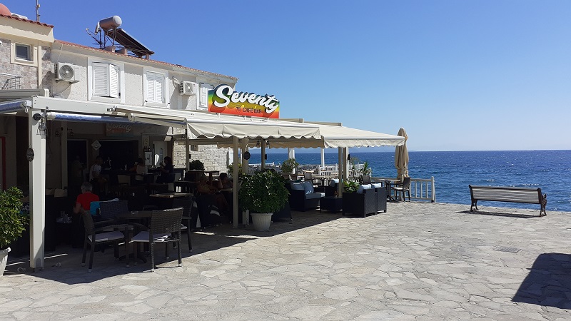 Seventy Café-Bar, Ireo, Samos, Griechenland; Öffnungszeiten: täglich 09:00 – 03:00 Uhr.